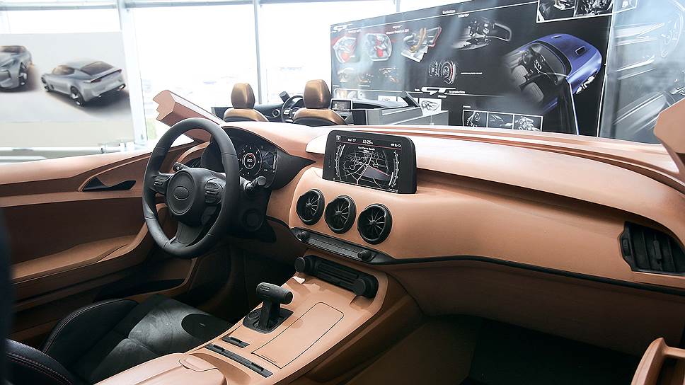 Полноразмерный макет утратил несколько самых смелых деталей прототипа KIA GT 2011, но сохранил широкий длинный капот, низкий профиль кабины и выигрышный силуэт фастбэка