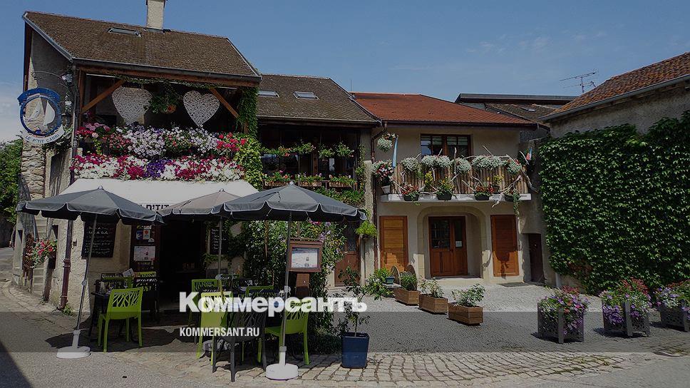Незатейливая обстановка уличного деревенского кафе восполняется цветочным дизайном окружающих домов