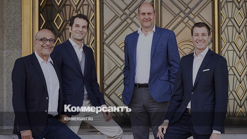 Жан, Ральф, Альбер и Роберто Богосяны у входа в Фонд Богоссянов в Брюсселе