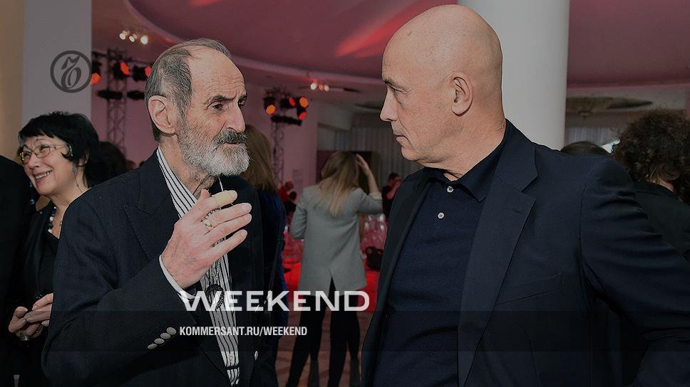 Художник Эрик Булатов и бизнесмен Шалва Бреус (справа) на церемонии вручения премии Кандинского в кинотеатре "Ударник"