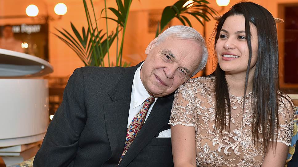 Артист эстрады Михаил Грушевский с женой Евгенией Гусляровой на вернисаже выставки «Жены» в Музее русского импрессионизма