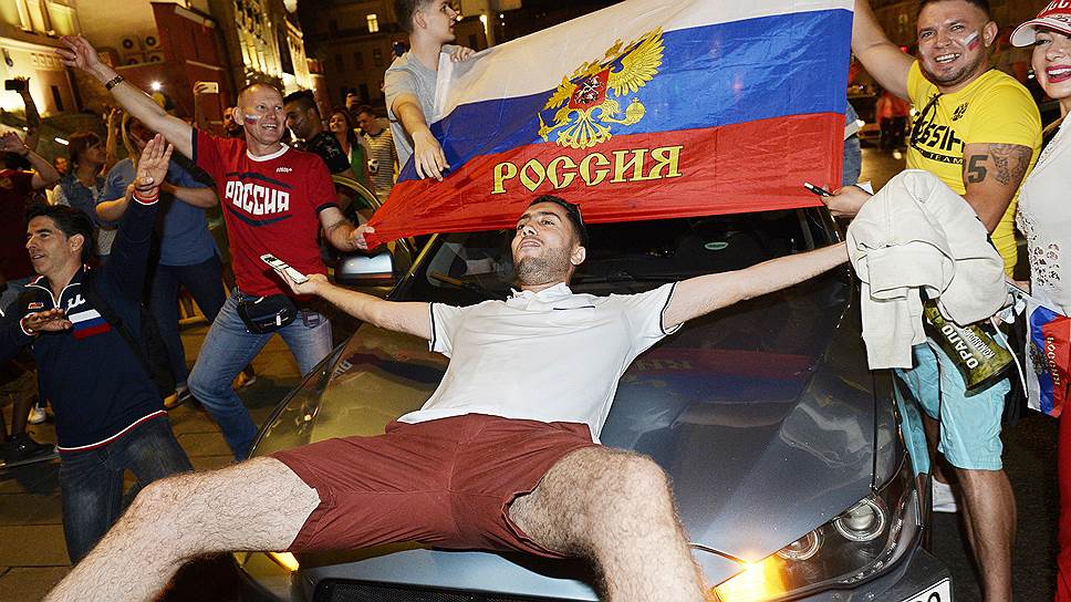 Болельщики отмечают победу футбольной сборной России в Нижнем Новгороде