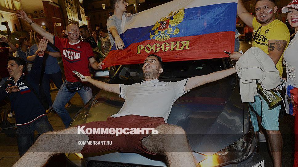Болельщики в центре Санкт-Петербурга после окончания матча Россия—Египет