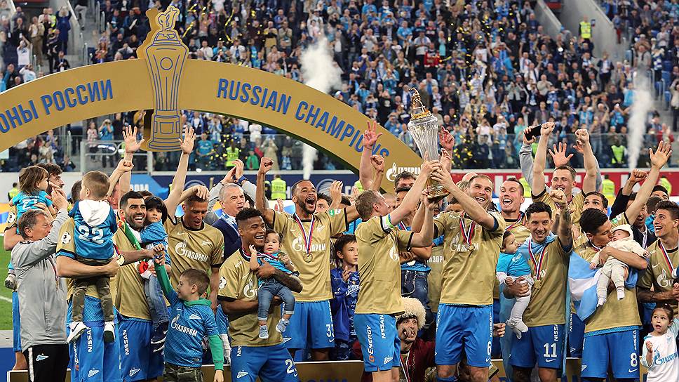 Санкт-петербургский футбольный клуб «Зенит» после матча 28-го тура Российской премьер-лиги (РПЛ) против ЦСКА получил кубок за победу в РПЛ в сезоне-2018/19. Трофей из рук президента Российского футбольного союза Александра Дюкова получили игроки «Зенита» Александр Анюков и Бранислав Иванович.Для «Зенита» этот титул стал пятым в российской истории. Таким образом, согласно регламенту, кубок перешел клубу на вечное хранение. К сезону-2019/20 РПЛ изготовит новый трофей.В сегодняшнем матче «Зенит» обыграл ЦСКА со счетом 3:1.Напомним, сыграв вничью в матче 27-го тура чемпионата РПЛ с «Ахматом» в Грозном, и дождавшись осечки единственного конкурента, «Локомотива», уступившего 0:2 «Арсеналу», «Зенит» досрочно выиграл чемпионский титул. За три тура до финиша сине-бело-голубые стали недосягаемыми для конкурентов.О досрочном чемпионстве читайте в публикации “Ъ” «Весенне-полевой роман».