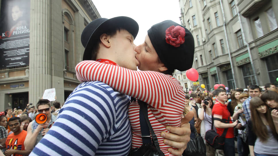 Участники акции «Поцелуи без правил» на Старом Арбате, апрель 2012 года