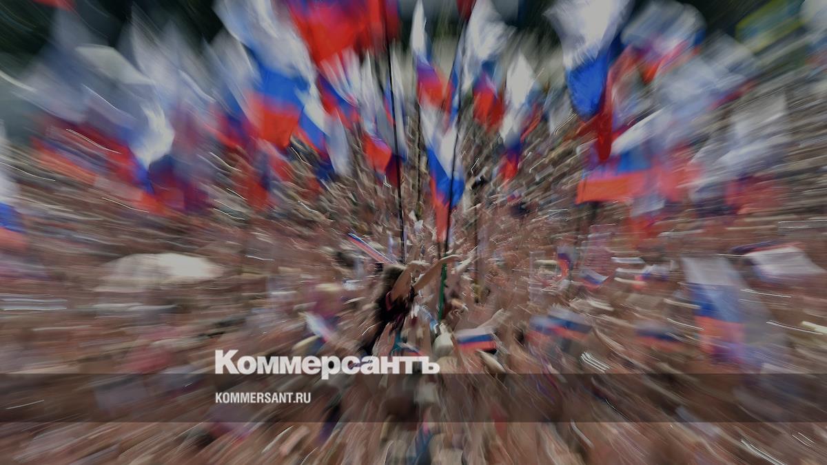 Участники митинга-концерта в честь Дня Российского флага на проспекте Сахарова