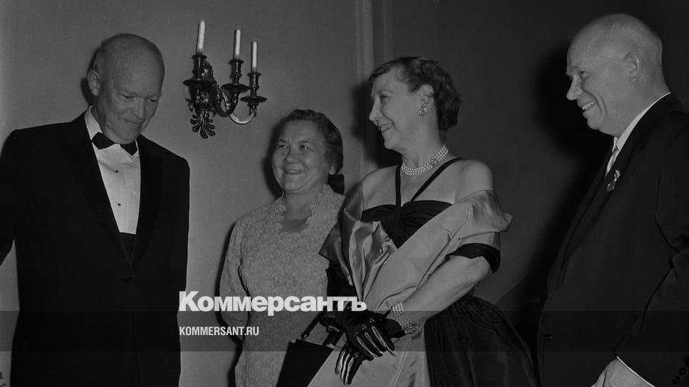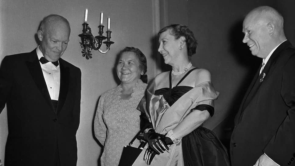 Н. С. Хрущев и сопровождавшая его в поездке Н. П. Хрущева дали обед в советском посольстве в Вашингтоне в честь президента Дуайта Эйзенхауэра и его супруги