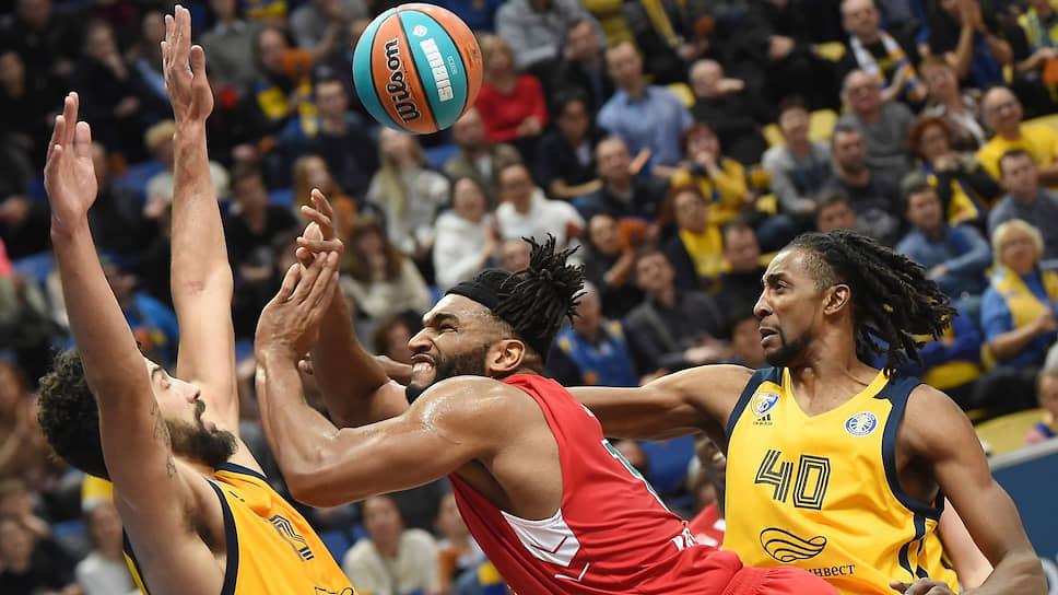Форвард «Локомотива» Алан Уильямс (в центре) в матче против «Химок» отметился дабл-даблом — он набрал 12 очков и сделал 10 подборов