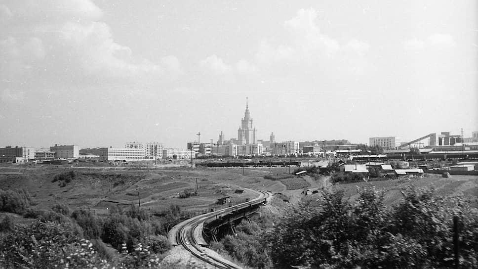 Вид на деревню Матвеевская и здание МГУ в 1966 году