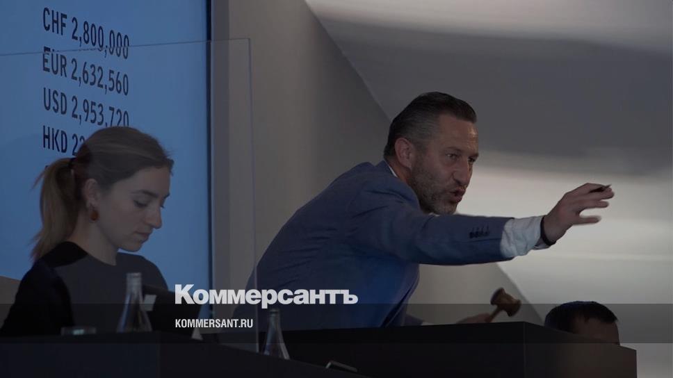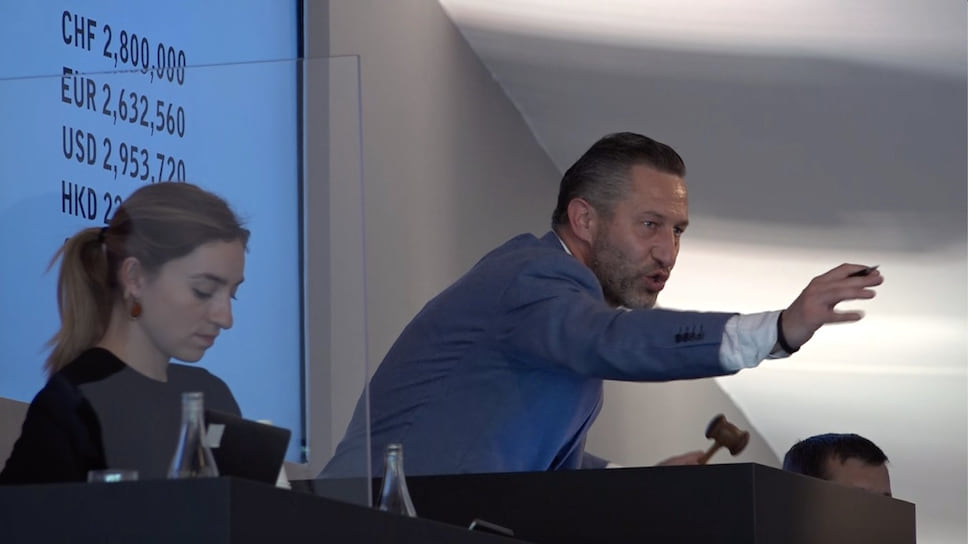 Аурел Бакс на трибуне продает лот 38 на часовом аукционе The Geneva Watch Auction: XI