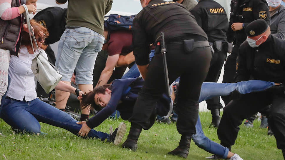 Сотрудники правоохранительных органов задерживают демонстрантов
