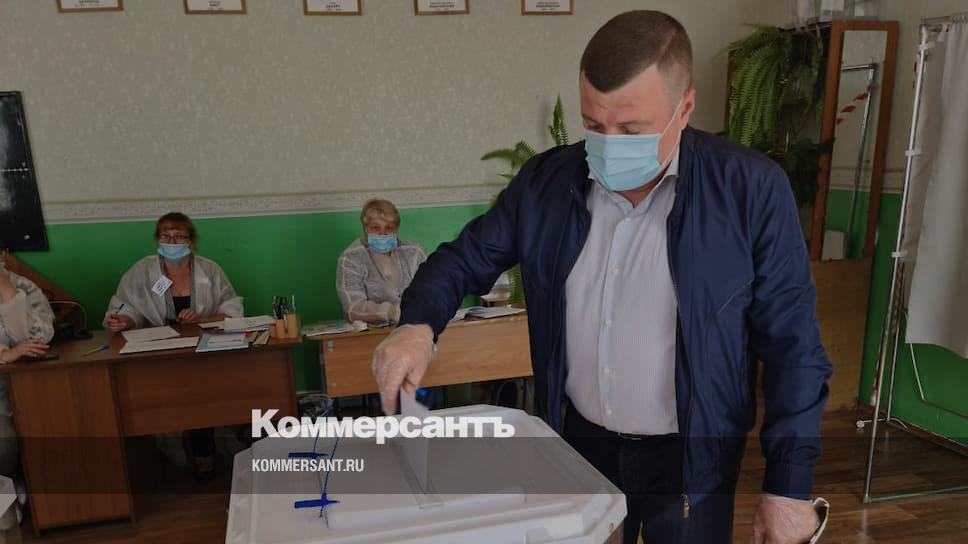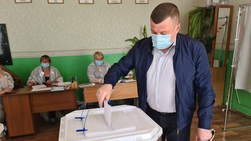 Губернатор Александр Никитин во время голосования на избирательном участке №241 на выборах губернатора Тамбовской области