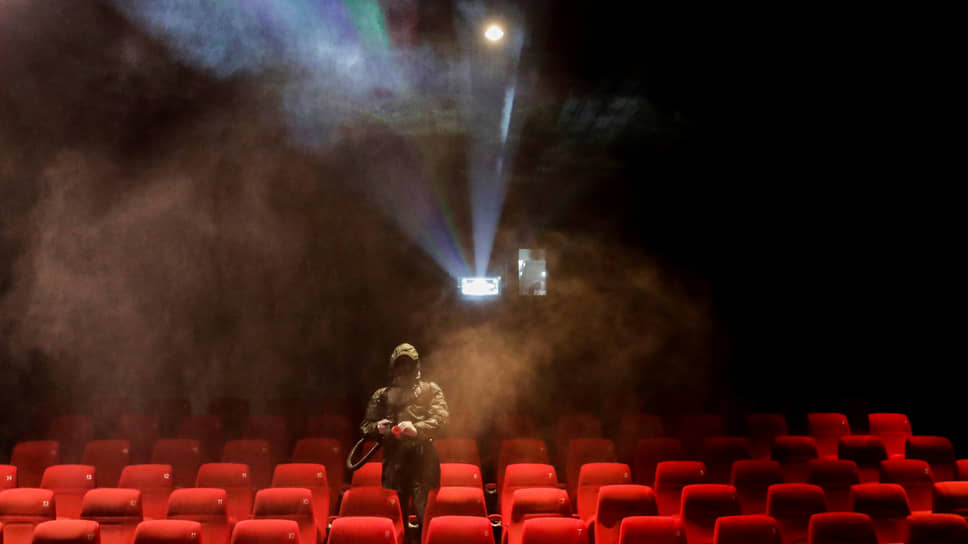 Катманду, Непал. Дезинфекция зала в преддверии открытия кинотеатра после коронавирусных ограничений