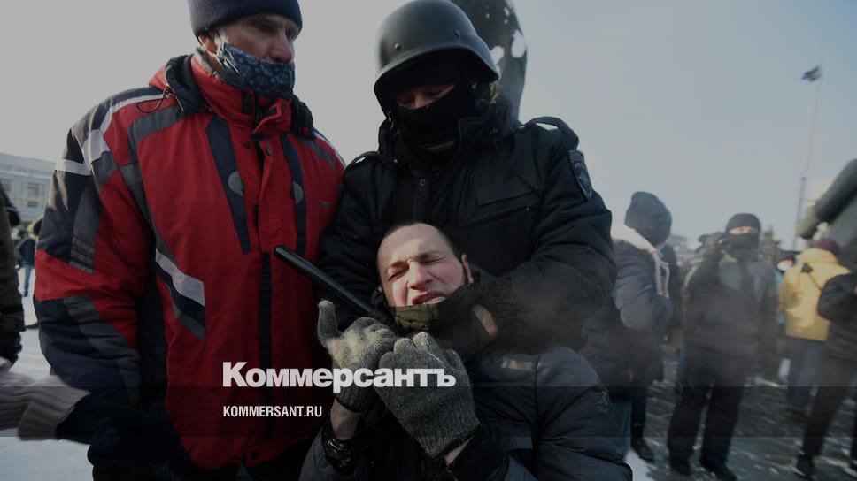 Акция в поддержку задержанного оппозиционера Алексея Навального на площади Ленина. Сотрудники полиции во время задержания участников акции