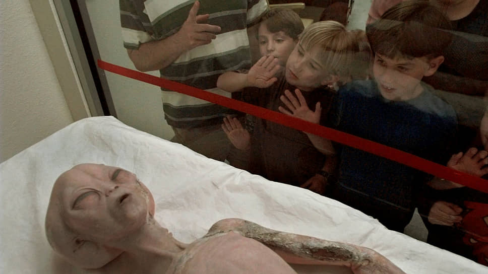 Дети разглядывают модель инопланетянина, выставленную в Международном музее и исследовательском центре НЛО в Розуэлле (США)