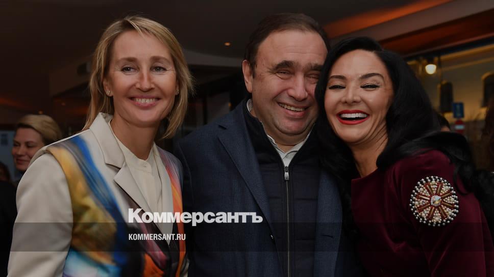 Слева направо: солистка Государственного академического Большого театра Анастасия Винокур, бизнесмены Станислав Лисиченко и Сергей Лесс на поэтическом вечере основательницы бренда l'Enigme Елены Лесс