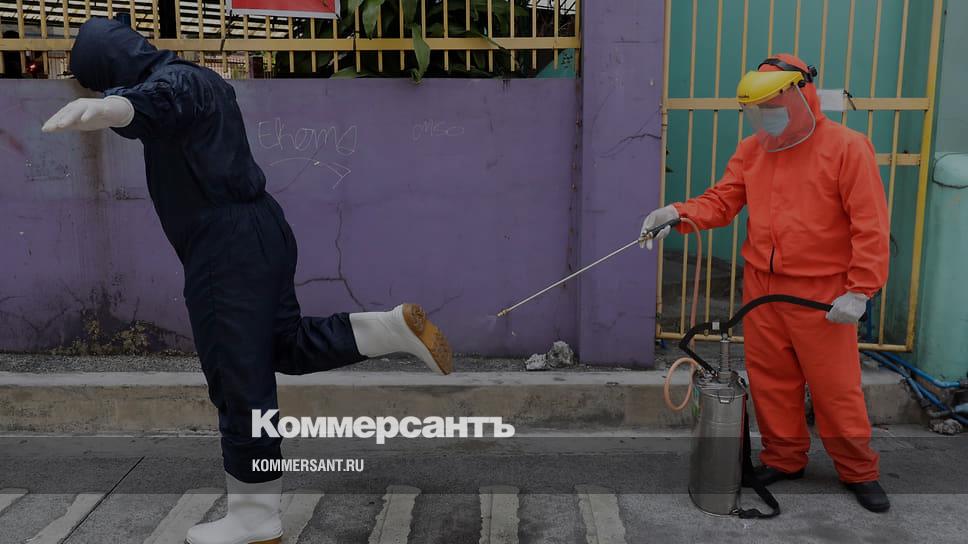 Кесон-Сити, Филиппины. Медики проводят дезинфекцию после тестирования на коронавирус