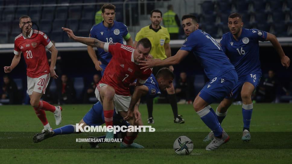 Сборная России (в центре в красной форме — Антон Заболотный) во втором тайме разнесла кипрскую оборону в щепки
