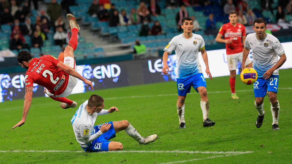 Все усилия футболистов «Спартака» (в красно-белой форме) забить разбились о самоотверженную игру «Сочи» в обороне