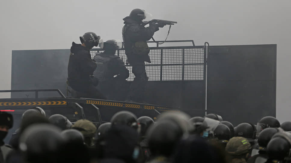 Полицейские на акции протеста в Алматы