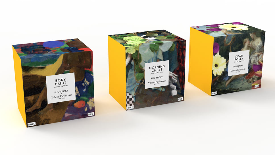 В честь 110-летия ГМИИ им. А. С. Пушкина стартовала творческая коллаборация музея с французским парфюмерным домом Vilhelm Parfumerie. В рамках сотрудничества были подобраны ароматы к нескольким работам из коллекции музея («Ее звали Вайраумати» Гогена, «Юпитер и Каллисто» Буше и «Пьеро и Арлекин» Сезанна) и созданы коллажи для упаковки. Так, творчество Франсуа Буше соотнесли с ароматом Dear Polly, а экзотика Поля Гогена прозвучала в композиции Body Paint. Кроме лимитированной серии ароматов Vilhelm Parfumerie в специальном дизайне были выпущены и термокружки, шоперы, раскраски, блокноты — их можно найти в магазинах музея, бутике Vilhelm Parfumerie и Molecule.