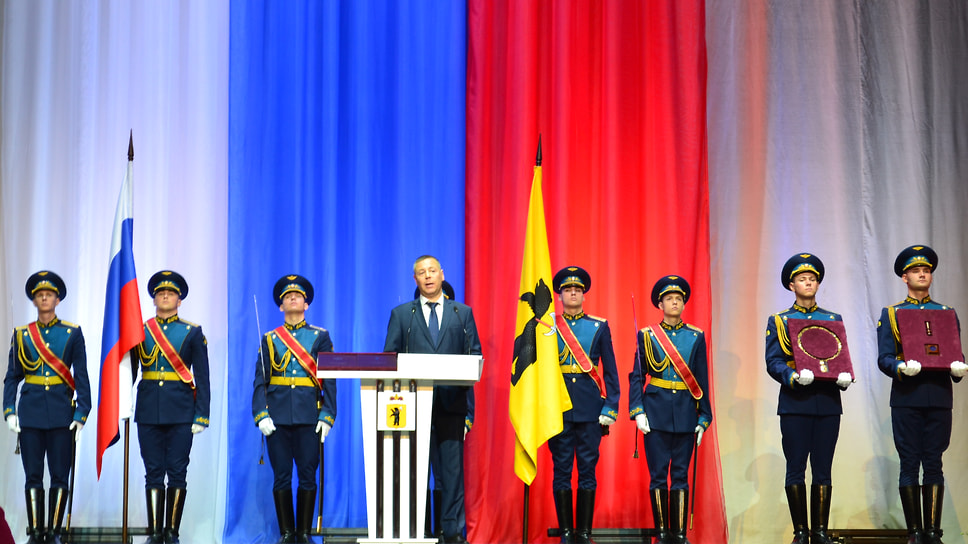 «После принятия присяги губернатор считается приступившим к своим обязанностям и наделяется символами власти Ярославской области: должностным губернаторским знаком и губернаторской печатью»,— председатель Ярославской областной думы Михаил Боровицкий