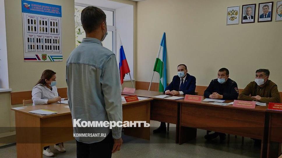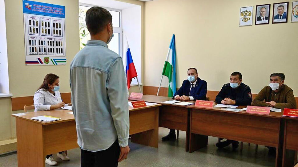 Кандидат в ряды армии перед комиссии во время осенней призывной кампании