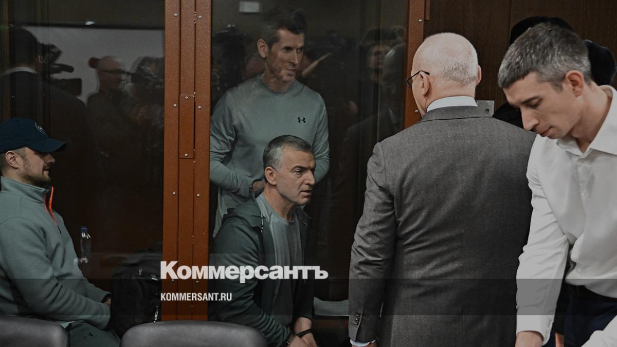 Слева направо на втором плане: бывший начальник департамента сопровождения бизнеса АО «Объединенная зерновая компания» (ОЗК) Роман Грибанов, бывший генеральный директор ООО «Интекс» Артур Максидов и совладелец группы компаний «Сумма» Зиявудин Магомедов во время заседания суда