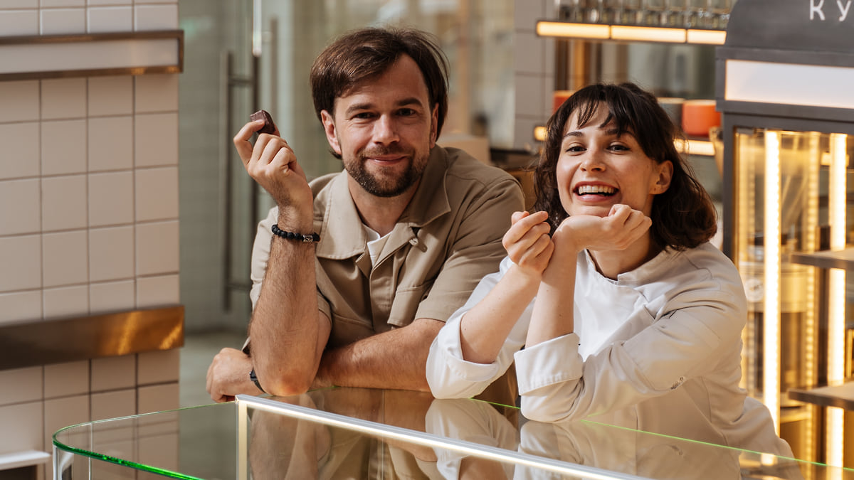 Создатель фабрики «Культура» Дмитрий Рязанов и бренд-кондитер Женя Шефер