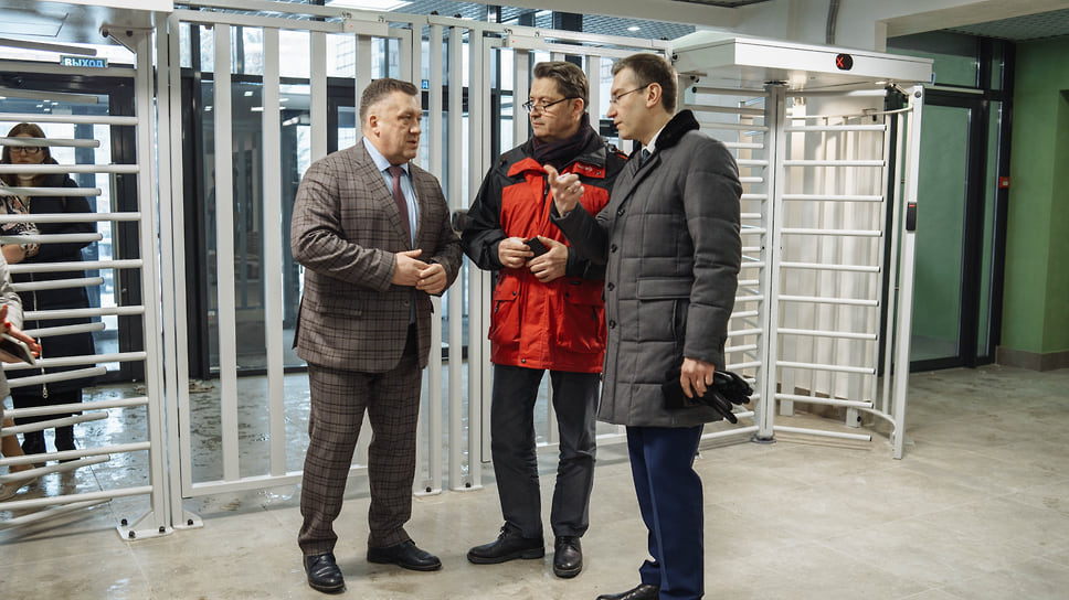 Замглавы администрации Ижевска Дмитрий Чистяков, глава Ижевска Олег Бекмеметьев и председатель правительства Удмуртии Ярослав Семенов в школе №88
