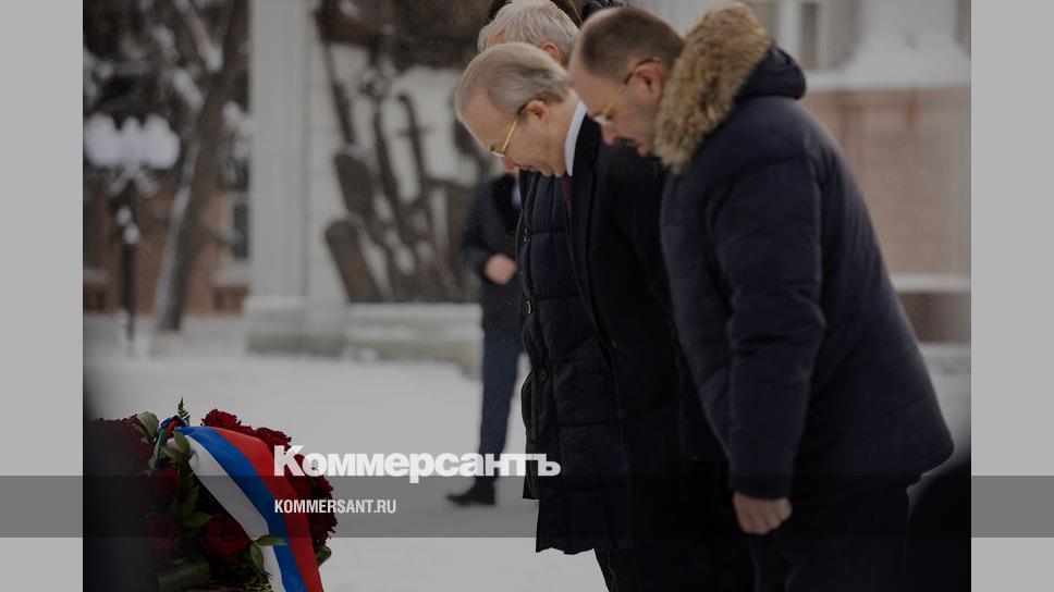 Премьер-министр Башкирии Андрей Назаров и другие члены правительства во время возложения венков 23 февраля