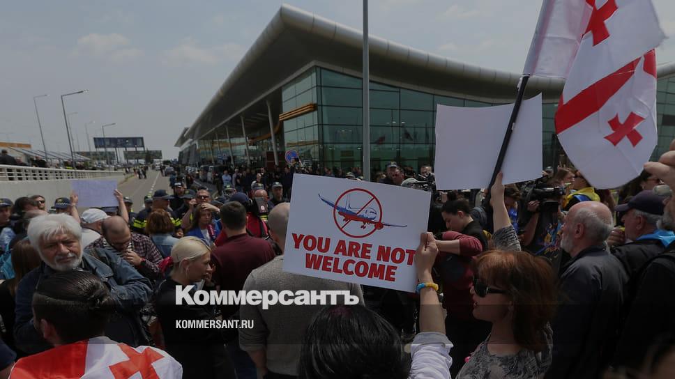 Первый после долгого перерыва авиарейс из Москвы в Тбилиси встретили акциями протеста