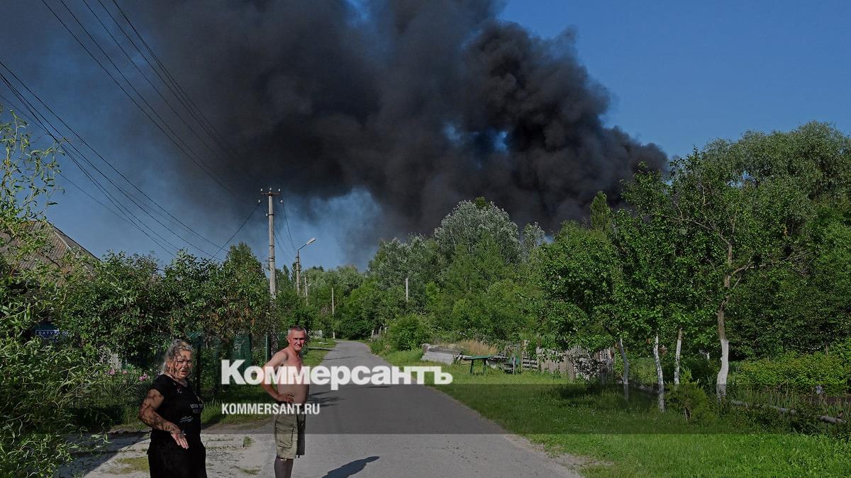 На фото: дым от пожара после обстрела в Шебекино
