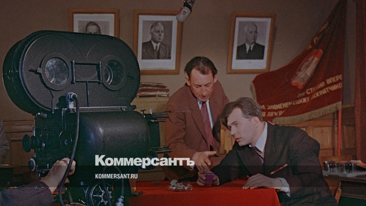 На фото: Владимир Басов (за камерой) и исполнитель роли геолога Батанина Анатолий Кузнецов (справа) на съемках фильма «Случай на шахте восемь», 1957 год