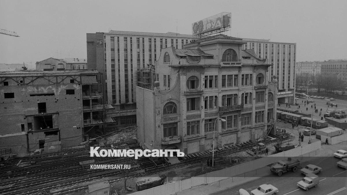 Передвижение здания редакции газеты «Труд» (Дом Сытина) по улице Горького в сторону Настасьинского переулка в ходе реконструкции Пушкинской площади в 1979 году