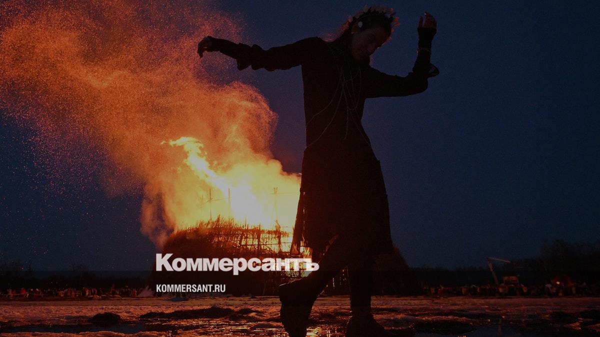 Сожжение арт-объекта, символизирующего зиму, в арт-парке «Никола-Ленивец»