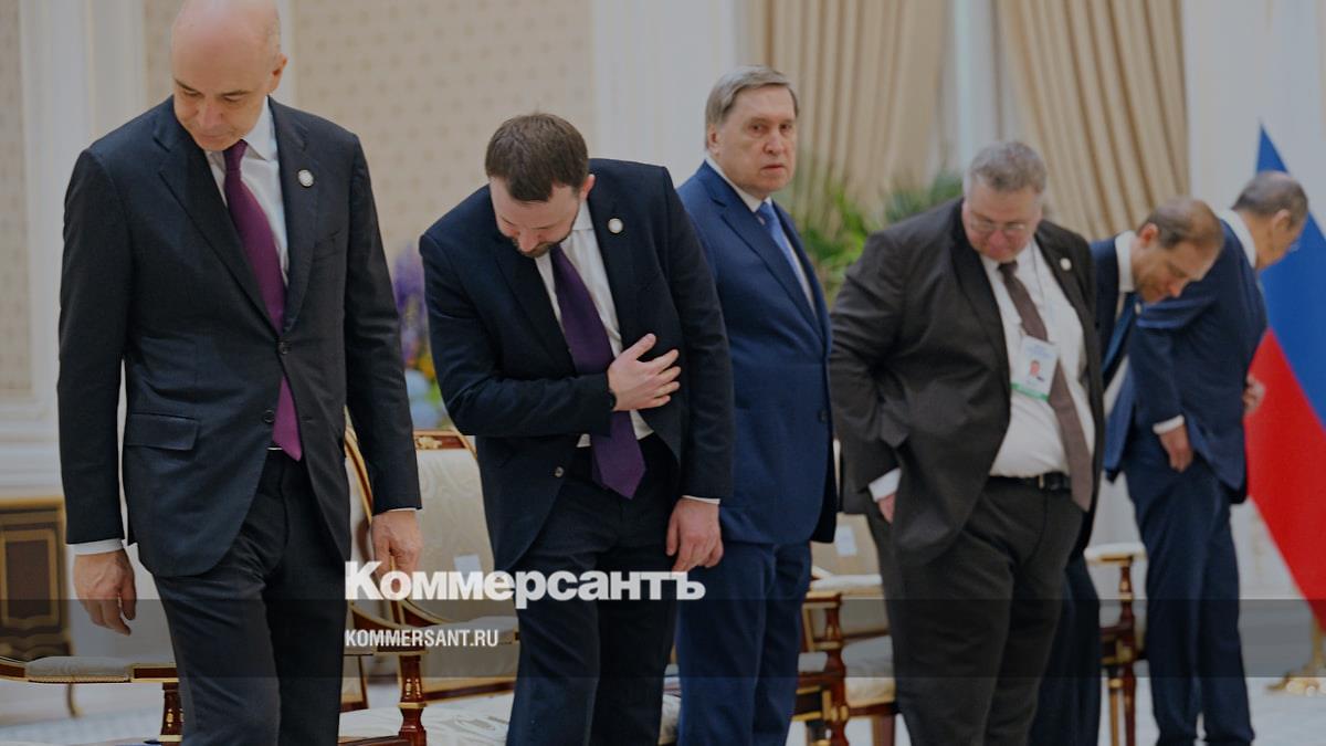 Ташкент. Слева направо: министр финансов РФ Антон Силуанов, замруководителя АП Максим Орешкин, помощник президента РФ Юрий Ушаков, вице-премьер РФ Алексей Оверчук, первый вице-премьер РФ Денис Мантуров и глава МИД РФ Сергей Лавров на встрече президентов РФ и Узбекистана