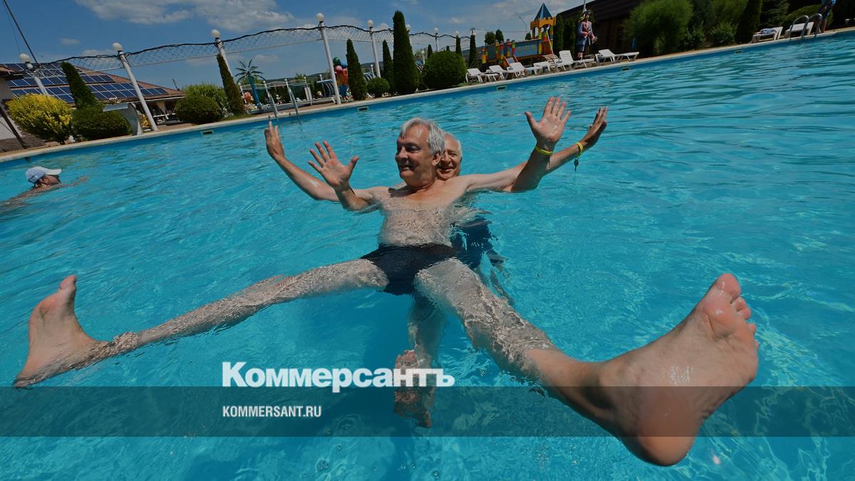 На фото: люди купаются в бассейне термального источника в Республике Адыгея