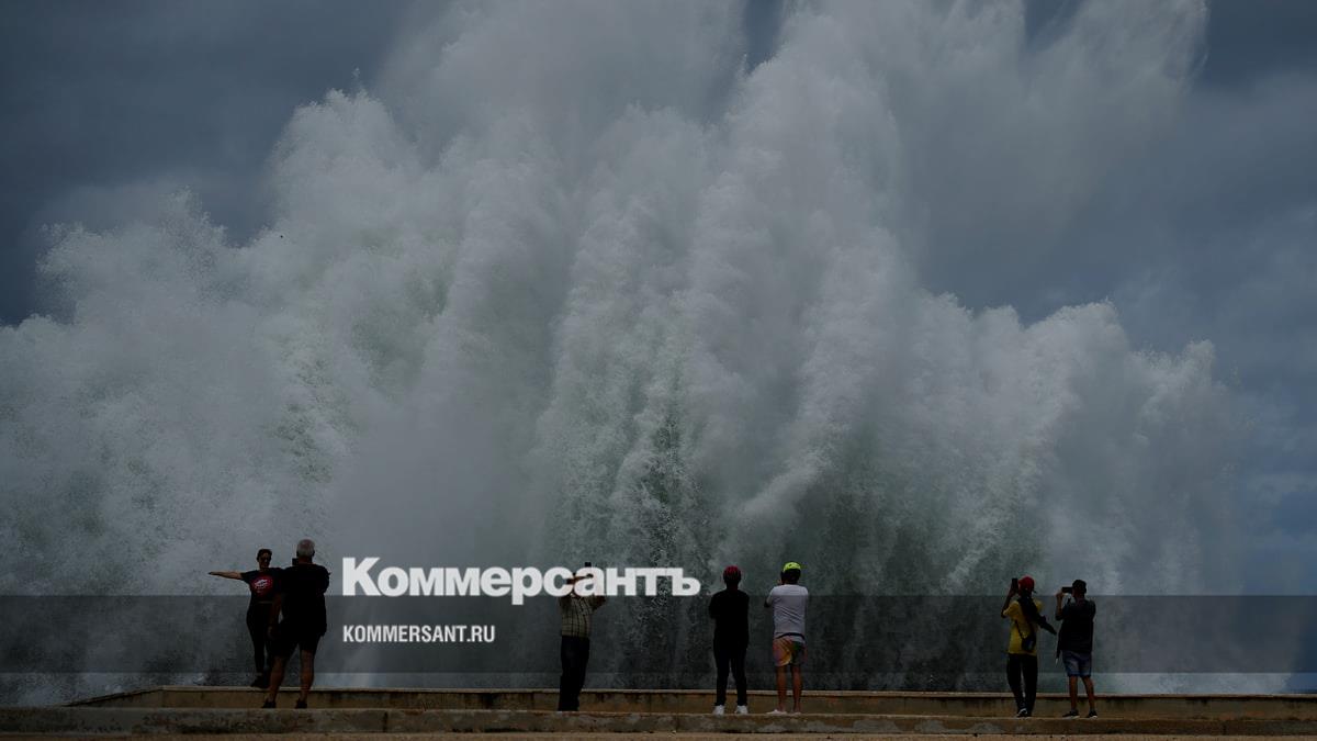 Гавана. Люди фотографируют брызги волн, вызванные ураганом «Милтон», на дамбе Малекон