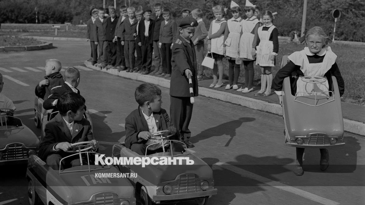 Детские соревнования на игрушечных автомобилях в городке ГАИ