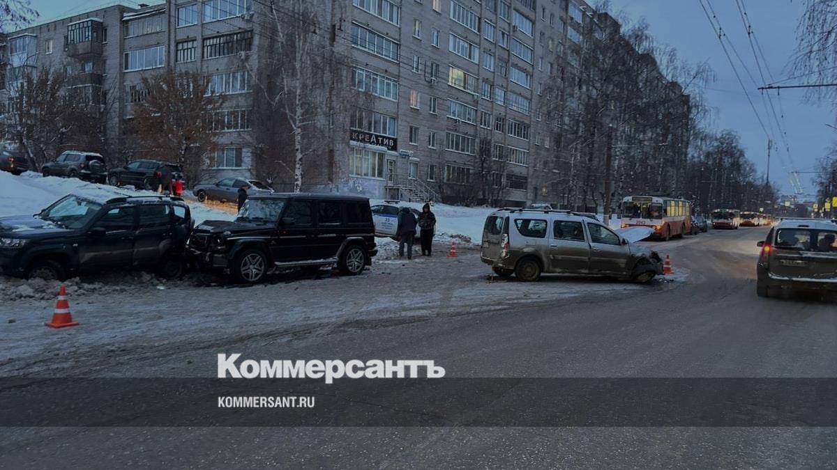 Утром 19 декабря на ул. Воровского в Ижевске водитель автомобиля Lada Largus столкнулся при повороте налево с движущимся во встречном направлении Mersedes.Об этом сообщает 1-й отдел Госавтоинспекции Удмуртии.