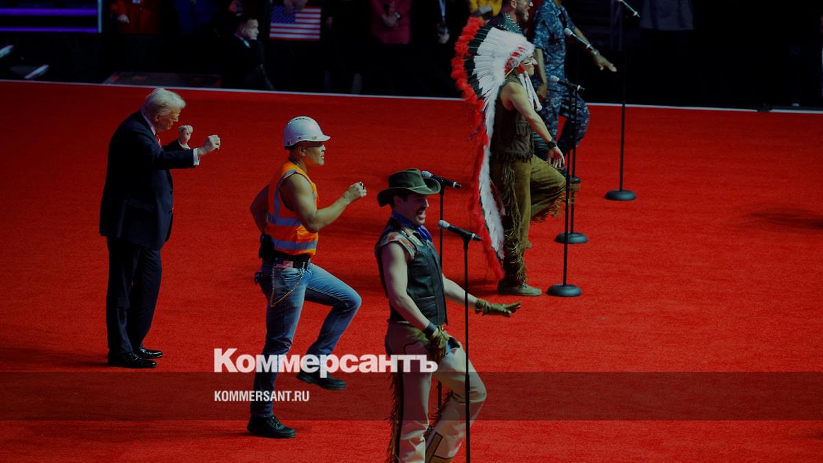 Дональд Трамп (справа) наблюдает за выступлением музыкальной группы Village People
