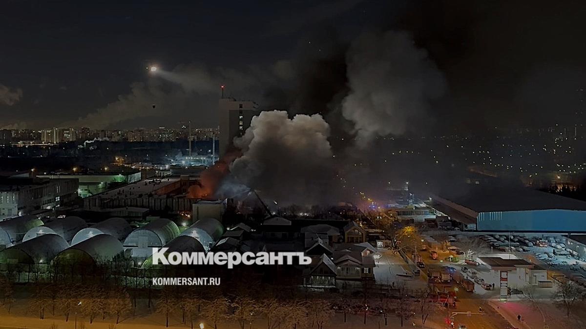 Вечером 19 февраля на Варшавском шоссе в Москве загорелось здание бывшего Института вычислительной техники им. С. А. Лебедева. Кадры с места происшествия — в фотогалерее «Ъ».
