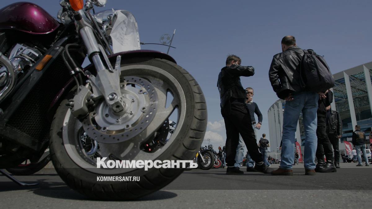 Мотоциклисты собираются у стадиона