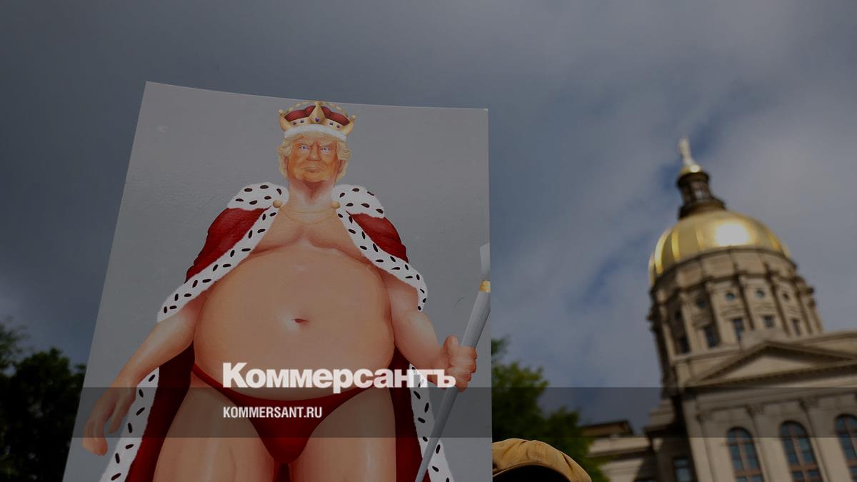 Портрет президента США Дональда Трампа в короне и мантии в Атланте