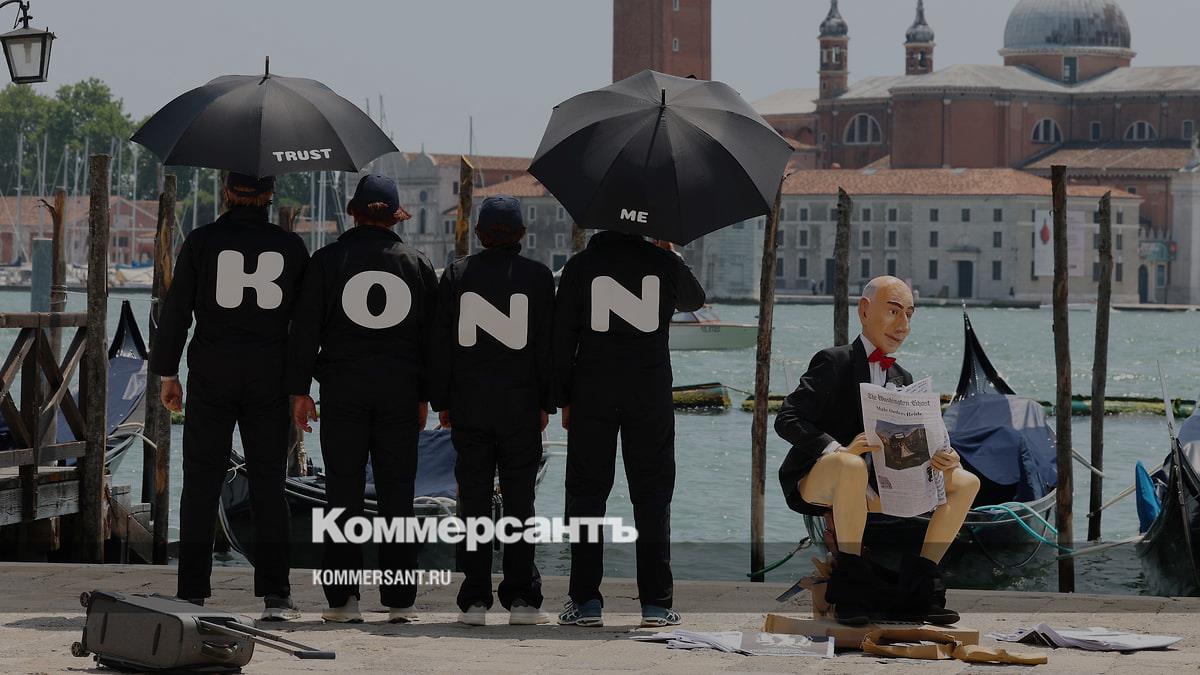 На фото: участники арт-коллектива Konn Artiss с манекеном в виде Джеффа Безоса
