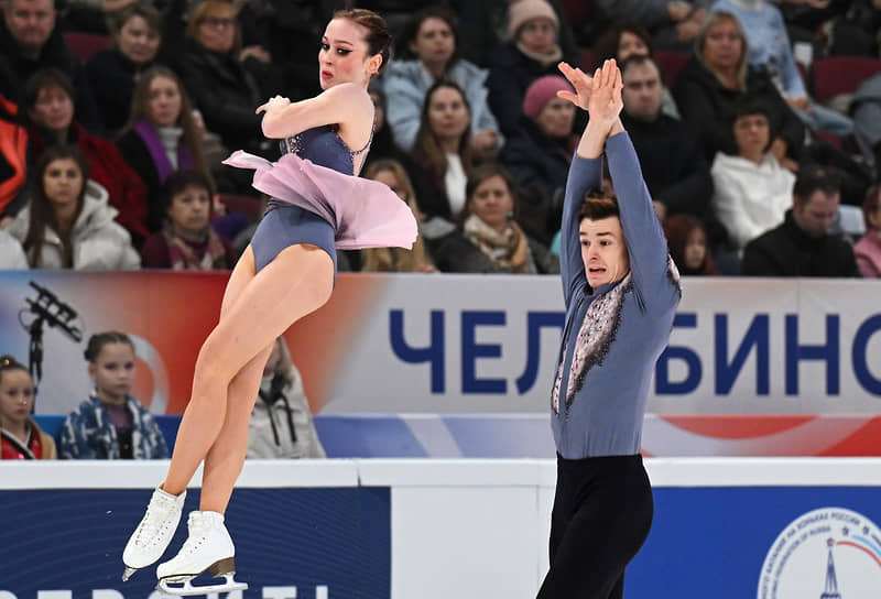 Фигуристы Софья Леонтьева и Даниил Горелкин во время выступления