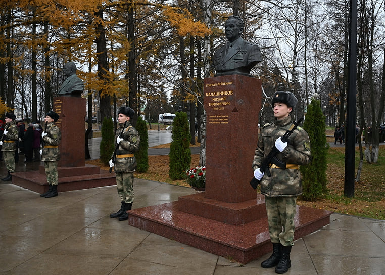 10 ноября, в 106-го дня рождения конструктора стрелкового оружия Михаила Калашникова, в Ижевске прошла церемония возложения цветов к его бюсту у Монумента боевой и трудовой славы, сообщает пресс-служба главы и правительства Удмуртии.