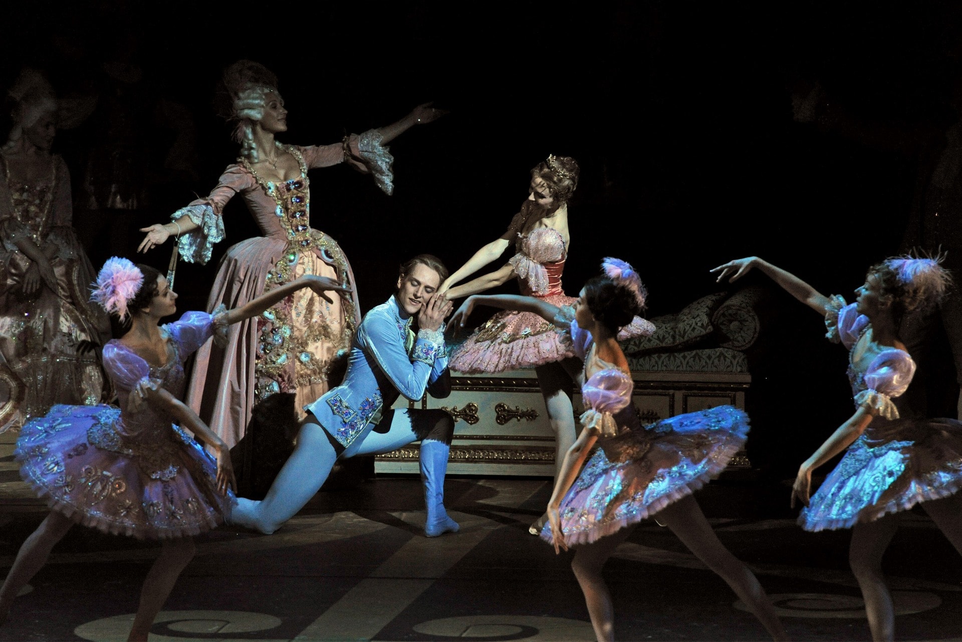 «Спящая красавица». Принцесса Аврора — Светлана Захарова, Принц Дезире — Дэвид Холберг. «Спящая красавица» в новой редакции Юрия Григоровича и пышных декорациях мэтра итальянского театра Эцио Фриджерио открывала Историческую сцену, которая, подобно главной героине пробуждалась после многолетнего сна, связанного с капитальным ремонтом. Спектакль транслировался не только несколькими международными телекомпаниями, но и в интернете. 2011 год.