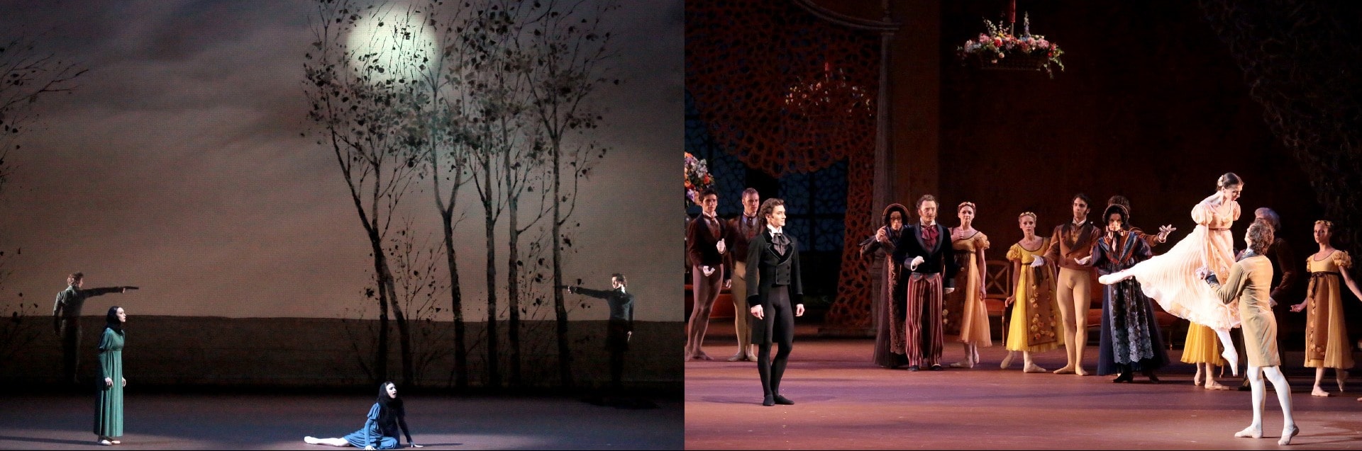 «Онегин». Онегин — Владислав Лантратов, Ольга — Анна Тихомирова, Ленский — Семен Чудин, Татьяна — Ольга Смирнова. В 60-е годы, когда хореограф Джон Крэнко решил поставить оперу Чайковского как балет — эту идею приняли в штыки и в Лондоне и в Штуттгарте, но Крэнко победил, и его «Онегин» имел огромный успех не только на Западе, но и в СССР, куда он, вопреки всем страхам организаторов, приехал на гастроли. Правда от оперы в партитуре не осталось ни одной ноты, и в основу легли другие произведения Чайковского. Теперь в репертуаре Большого есть и оперный и балетный вариант «Онегина». 2013 год.